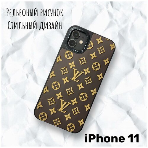 Чехол для Iphone 11 с рельефным рисунком Луи коричневый