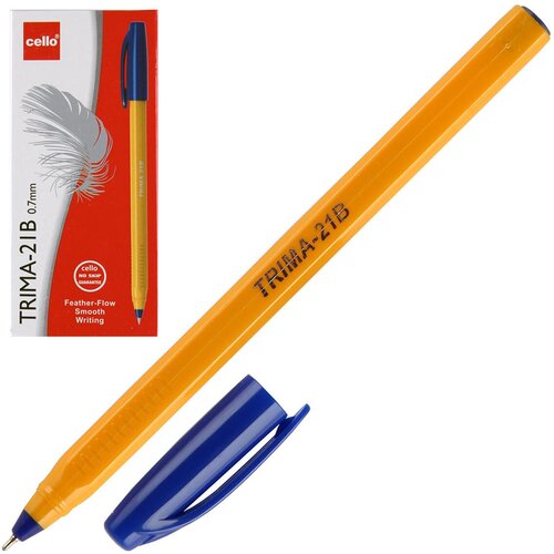 Ручка шариковая Cello Trima-21B, узел 0.7мм, чернила синие, корпус жёлтый