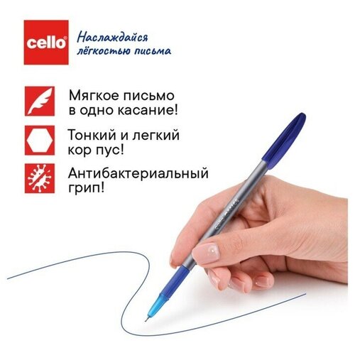 Ручка шариковая Cello Office Grip, узел 0.7 мм, резиновый упор, чернила синие, корпус серый