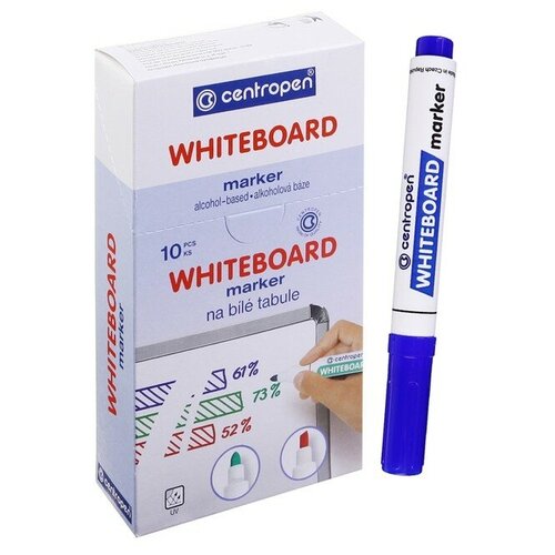 Маркер для доски, Centropen 8569, пулевидный/скошенный, 1.5-5.0 мм, синий(10 шт.)