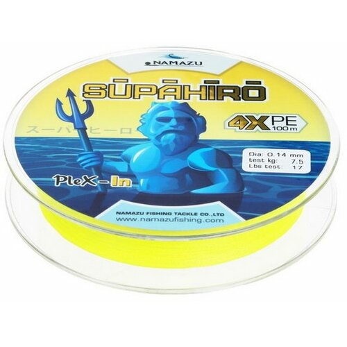Шнур плетеный Namazu Supahiro 4Х, L-100 м, d-0.14 мм, тест-7.5 кг, желтый