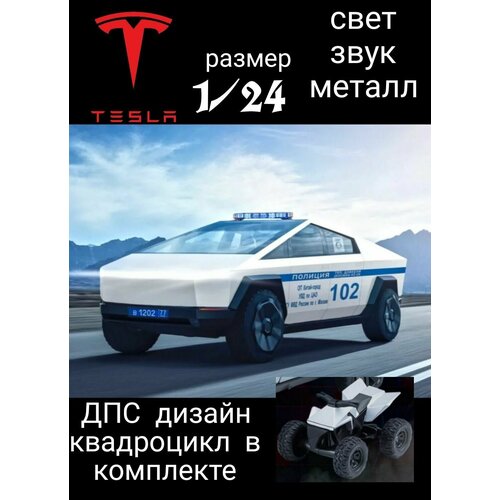 Коллекционная модель Tesla Cybertruck белая Полиция с квадроциклом