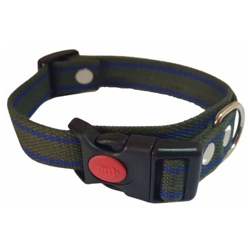 "Ошейник для собак (Зеленый с синей полосой) регулируемый нейлоновый, Max-45 см / 2 см"