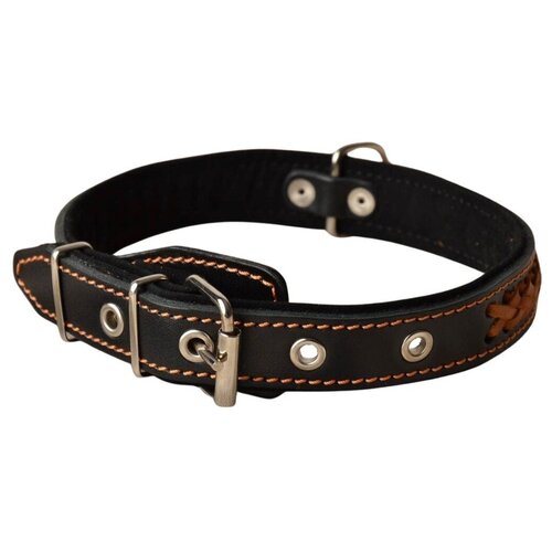 Ошейник для собак (Чёрный/кожа) оранжевая коса 53 см / 2.5 см