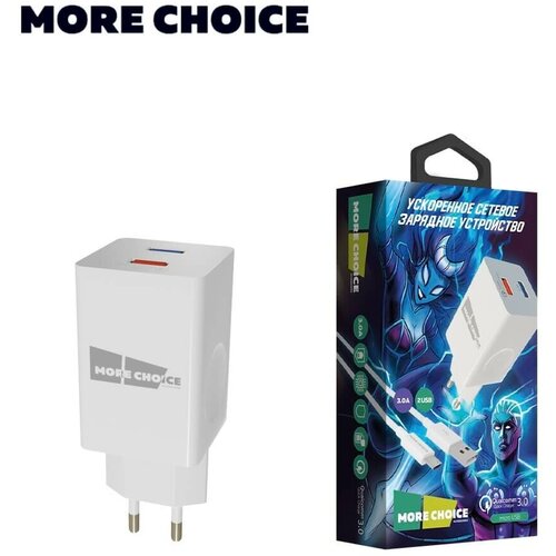 Зарядное устройство СЗУ Smart 2USB 3.0A QC3.0 быстрая зарядка для micro USB More choice NC55QCm (White)