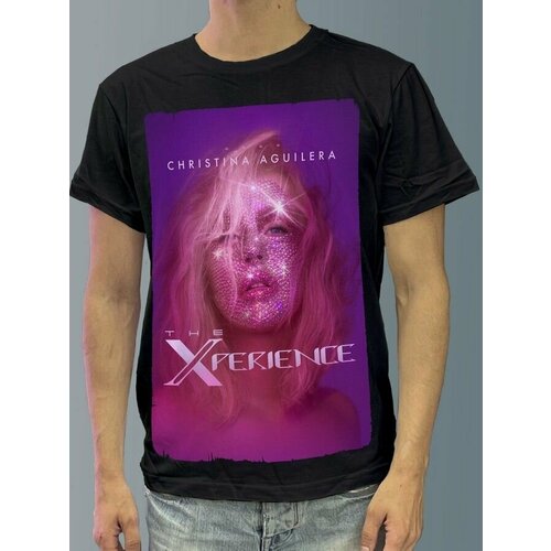Футболка мужская черная из хлопка с DTF рисунком Кристина Агилера - 3840