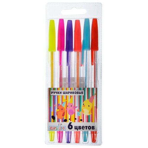 Набор ручек шариковых 6цв ClipStudio 0,7мм, в ПВХ пенале с подвесом