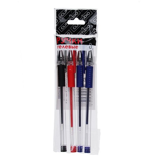 Набор ручек гелевых 4цв (2с, 1ч, 1к) прозр. корпус, резин. держатель, 0,5мм пакет с подв
