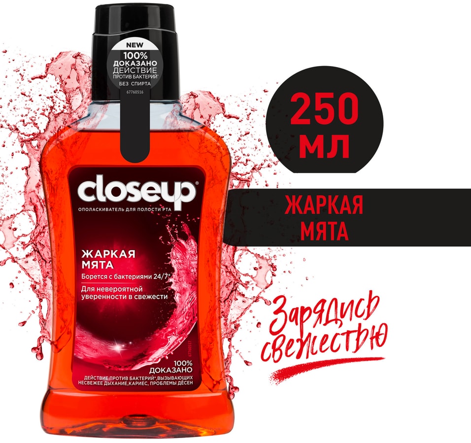 Ополаскиватель для полости рта Closeup "Жаркая мята", 250 мл./В упаковке шт: 1