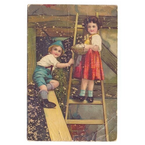 Открытка антикварная, Россия Империя 1916 год. Пасхальная. С маркой.
