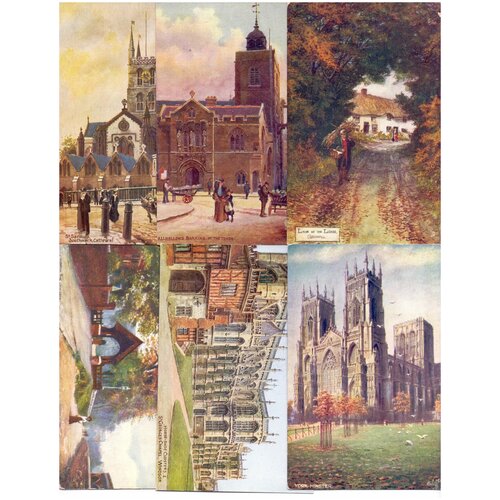 Набор антикварных открыток. Европа, Англия до 1917 года. Архитектура. Искусство. Чистые. Красивые. 6 штук.