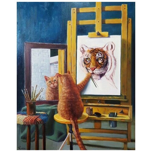 Картина по номерам на холсте 40х50 "Усатый художник"