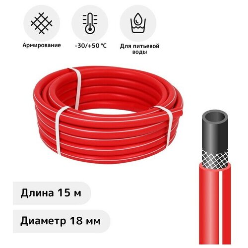 Шланг, ТЭП, d = 18 мм (3/4), L = 15 м, морозостойкий (до –30 °C), COLOR, красный