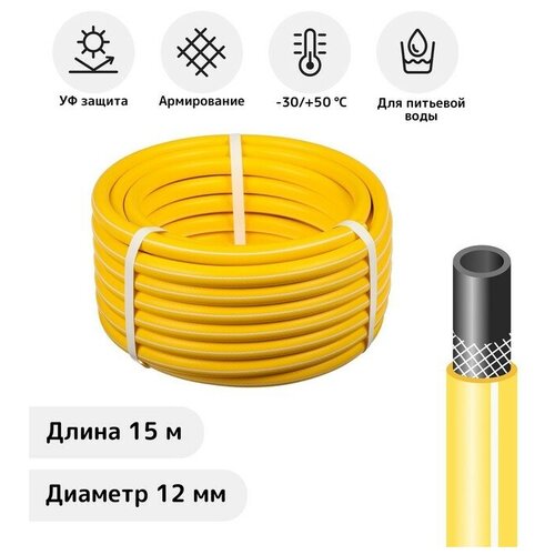 Шланг, ТЭП, d = 12 мм (1/2), L = 15 м, морозостойкий (до –30 °C), COLOR, жёлтый