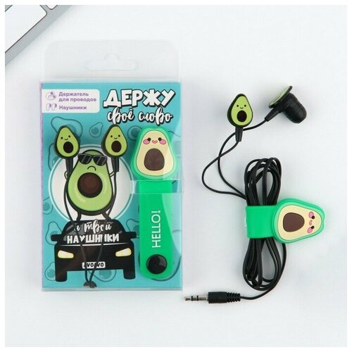 Набор держатель для проводов + наушники "Авокадо", мод. VBT 1.3, 12,5 х 8,5 см