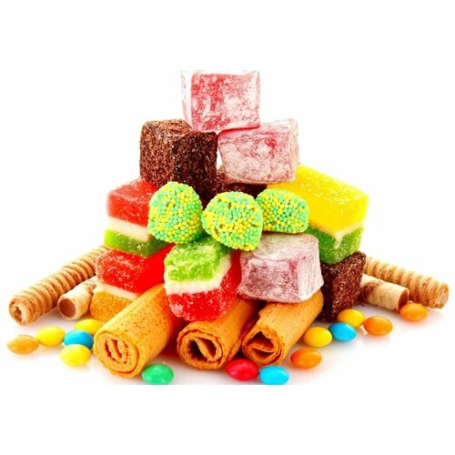Картина на холсте 40x60 LinxOne "Вафли colorful конфеты" интерьер для дома / декор на стену / дизайн
