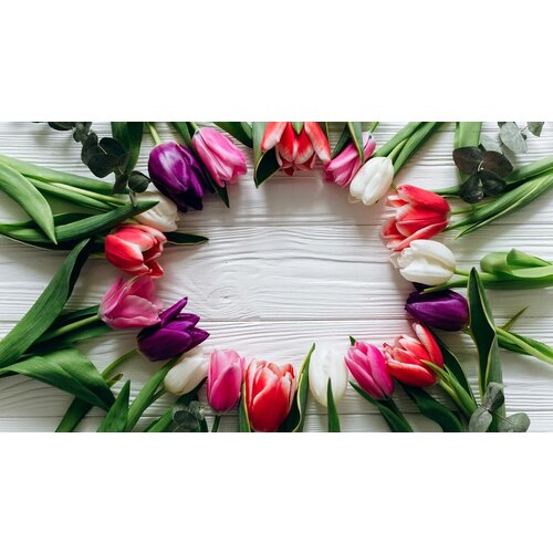 Постер на экокоже 40x40 LinxOne "Бабочки цветы tulips colorful" интерьер для дома / декор на стену / дизайн