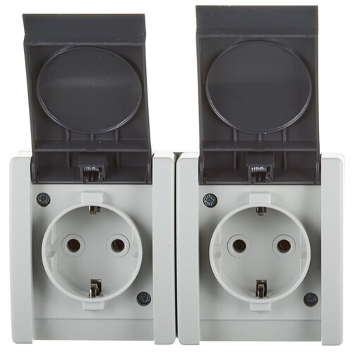 Aling-conel Розетка двойная POWER IP44 16A 250В о/у с поликарбонатовой вставкой, серый 2412.1A 117035
