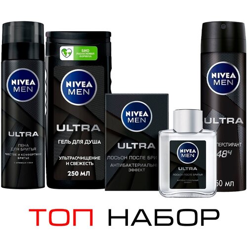 Мужской набор Nivea ULTRA, Подарочный набор. В наборе 4 предмета