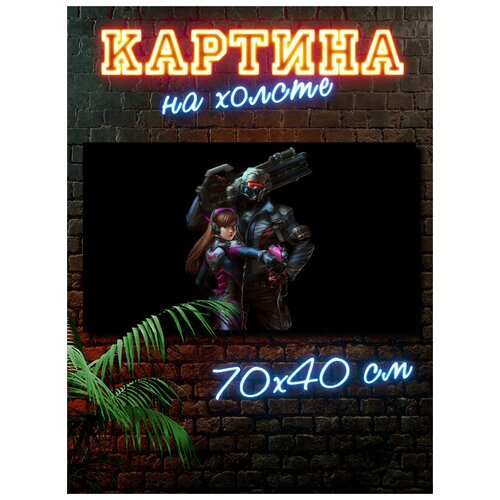 Овервоч D.Va и солдат -76, Картина на холсте / Картина интерьерная на стену / 70х40 см