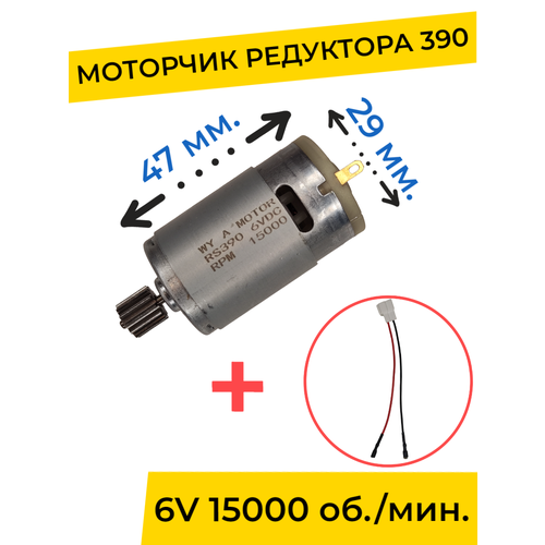 Моторчик (двигатель) редуктора для детского электромобиля 6V 390-15000 об./мин. с проводом , запчасти