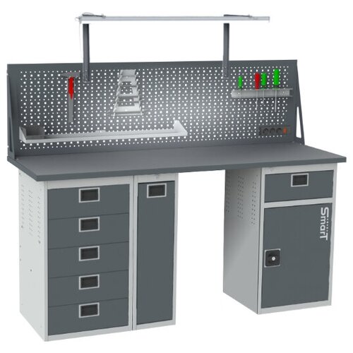 Стол производственный, верстак SMART 1760.1.1-1.P.1.dc универсальный в гараж, в мастерскую,1364х1766х605