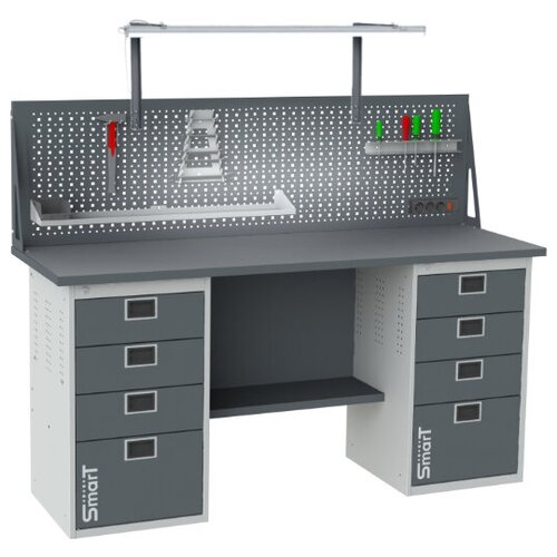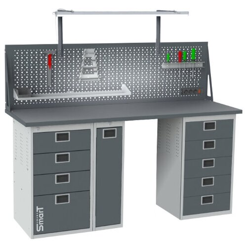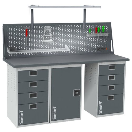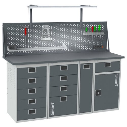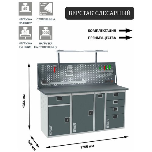 Стол производственный, верстак SMART 1760.1-1.1.P.4.dc универсальный в гараж, в мастерскую,1364х1766х605