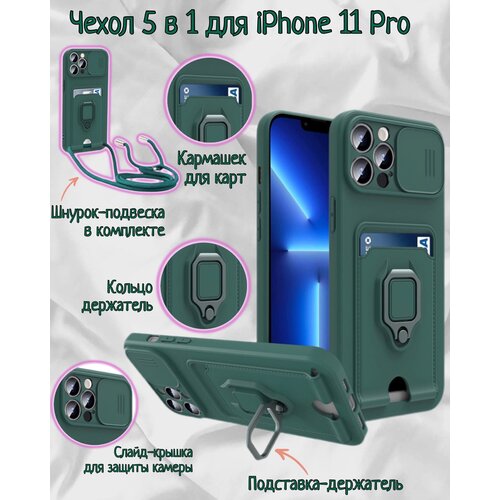 Чехол силиконовый на iPhone 11 Pro с кармашком для карт 5 в 1(зеленый)