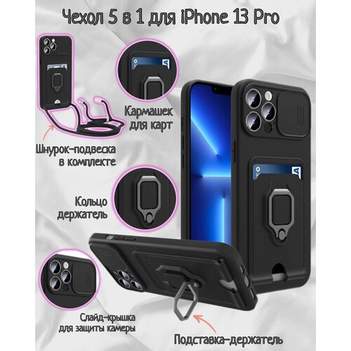 Чехол силиконовый на iPhone 13 Pro с кармашком для карт 5 в 1(черный)
