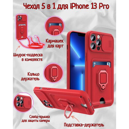 Чехол силиконовый на iPhone 13 Pro с кармашком для карт 5 в 1(красный)