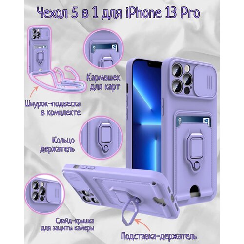 Чехол силиконовый на iPhone 13 Pro с кармашком для карт 5 в 1(пурпурный)
