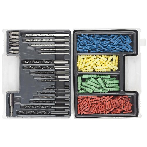 DEXX по металлу 7шт, по дереву 5 шт., по кирпичу 5 шт., биты 6 шт., дюбели 277шт, сверла комбинированные 2970-H300