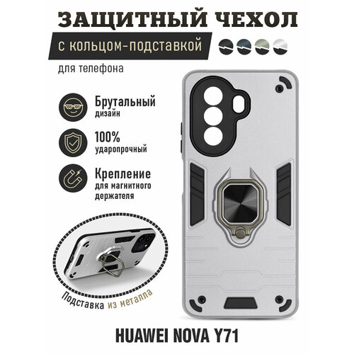 Защищенный чехол с металлической пластиной для магнитного держателя и кольцом для Huawei Nova Y71 DF hwArmor-07 (silver)