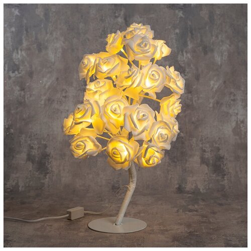 Светодиодный куст «Розы белые» 45 см, 24 LED, постоянное свечение, 220 В, свечение тёплое белое