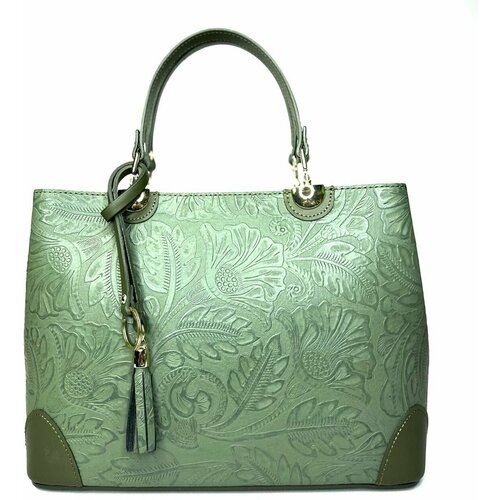Женская оливковая классическая итальянская сумка тоут формат А4 из натуральной кожи с ручками Vera Pelle