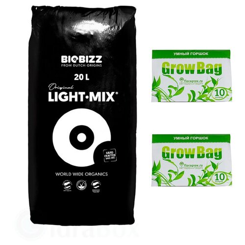 Субстрат Biobizz Light-Mix 20л + Горшок Grow Bag 2шт по 10л