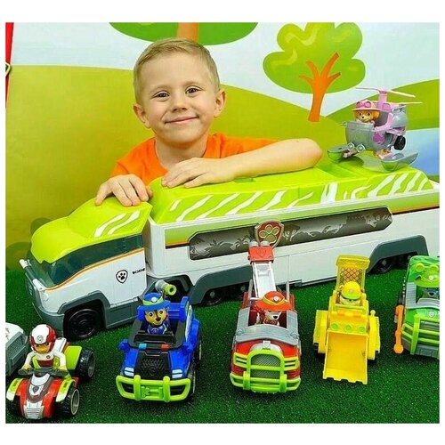 Большой Набор Патрулевоз/Автовоз/фура/трейлер и Райдер серии Джунгли Щенячий Патруль+8 героев на больших машинках (зеленый)