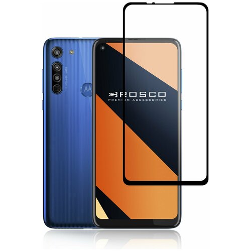 Защитное стекло ROSCO для Motorola Moto G8 (Моторола Мото Джи 8) с премиальным олеофобным покрытием, легко наклеить, прозрачное с черной рамкой