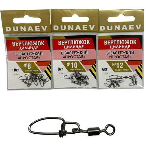 Вертлюжок цилиндр с застежкой "Простая" DUNAEV #8/10/12// 6шт/3уп