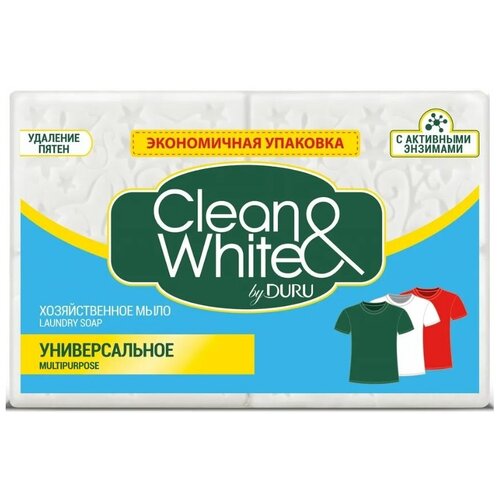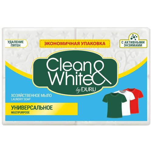 Мыло хозяйственное Clean & White by Duru Универсальное, 2 упаковки по 4 шт. 120 г