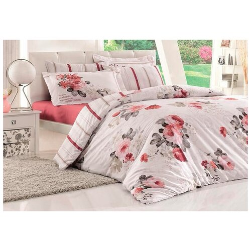 Постельное белье из сатина Duru Karven (кремовый-коралловый), 1,5 спальный (наволочки 50х70 и 70х70)