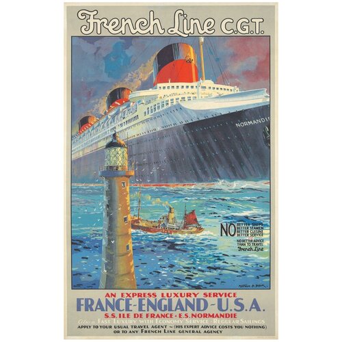 Постер / Плакат / Картина Корабли - Французская линия France - England - U.S.A 50х70 см в подарочном тубусе