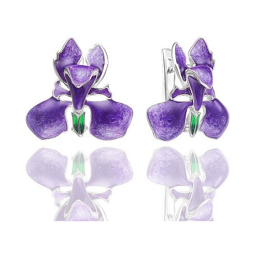 Серебряные женские серьги с эмалью в виде цветка 925 пробы родированные фиолетовые.
