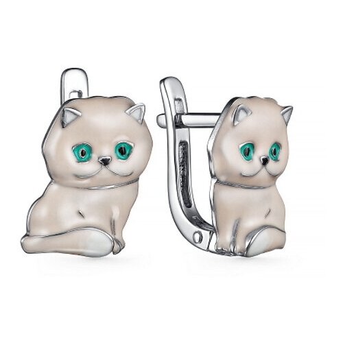 Детские серебряные серьги Кошечки 925 пробы родированные с эмалью