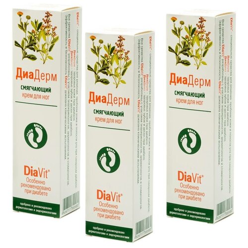 DiaVit. Крем для ног "ДиаДерм Смягчающий" - комплект из 3 шт. по 75 мл, эффективен при сахарном диабете (Аванта)