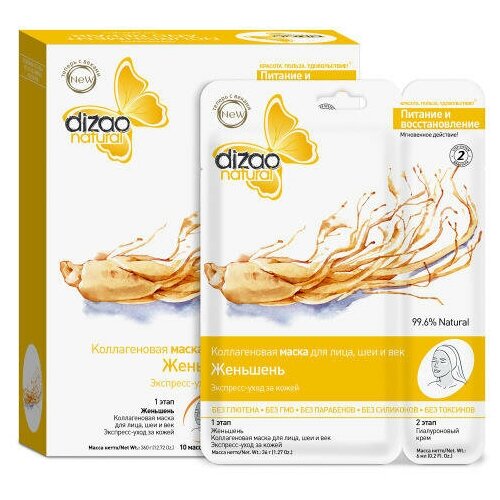 Маска DIZAO Двухэтапная для лица, шеи и век "Женьшень" 1 шт.