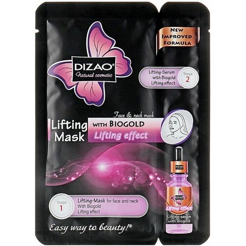 Dizao Lifting Mask with BioGold двухэтапная маска тканевая для лица и шеи с омолаживающим свойством, 1 шт