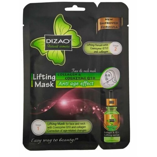 Dizao Lifting Mask Collagen Coenzime Q10 Anti Age Effect двухэтапная маска тканевая для лица и шеи с омолаживающим свойством, 1 шт