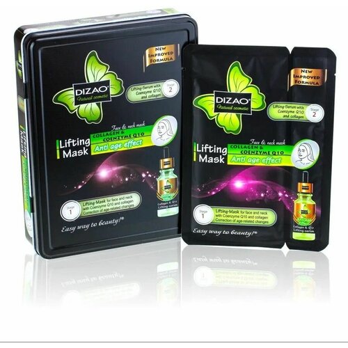 Dizao Lifting Mask Collagen Coenzime Q10 Anti Age Effect двухэтапная маска тканевая для лица и шеи с омолаживающим свойством, 10 шт