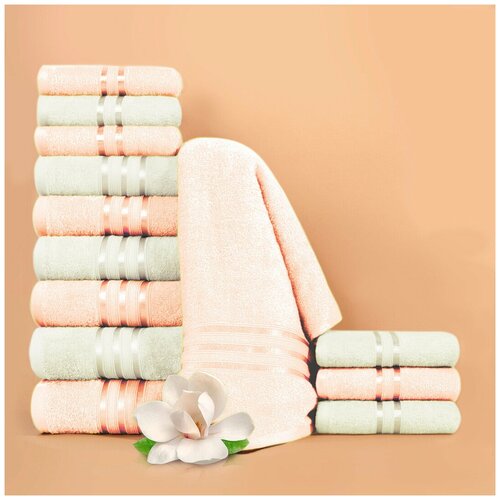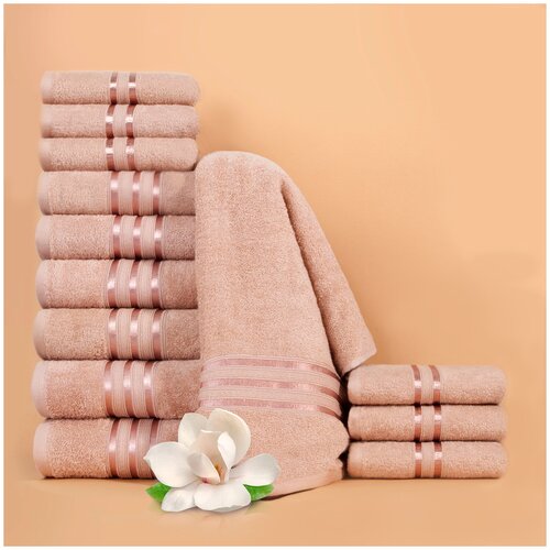 Dome Набор из 12 полотенец Harmonika цвет: персиковый, бежевый (30х50 см - 6 шт, 50х80 см - 4 шт, 70х130 см - 2 шт) br49565